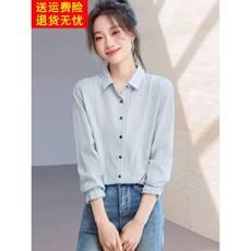 2025春秋新款纯棉纱小清新文艺翻领衬衫长袖宽松百搭显瘦衬衣女士