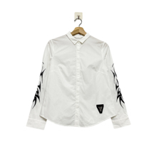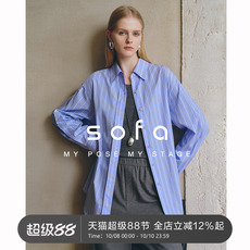 圣迪折扣女装 时尚撞色字母贴布个性图腾印花翻领长袖全棉衬衫