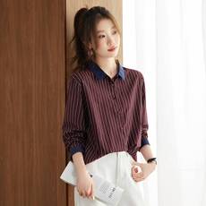 设计感小众撞色翻领长袖条纹衬衫女2025春秋新款宽松休闲纯棉衬衣