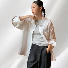 D63女装25秋季新款松弛感衬衫字母徽章翻领纯棉外套宽松长袖上衣