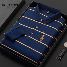 秋装新款纯棉长袖t恤男士翻领polo衫上衣男宽松商务休闲条纹体恤
