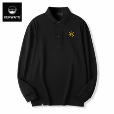 商枭2500!春季男士外贸翻领按扣运动弹力舒适休闲长袖T恤Polo衫