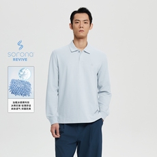 Oneup Sorona凉感抗菌珠地宽松长袖Polo翻领T恤衫秋冬休闲上衣男