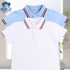 儿童polo衫t恤男蓝色翻领女童夏季短袖中大童小学生校服班服白T恤
