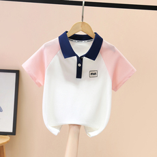 童装男女童中性夏季短袖T恤新款百搭撞色拼接趣味印花Polo衫翻领