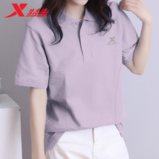 特步Polo衫女2025夏季新款透气速干翻领短袖t恤女士休闲女装半袖