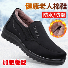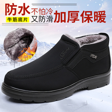 冬季老北京布鞋男士加绒加厚保暖中老年人一脚蹬防滑防水爸爸棉鞋