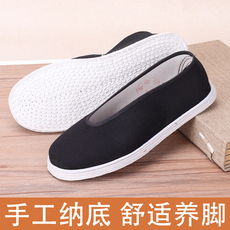 黄土地老北京布鞋秋季男款手工千层底中老年透气舒适休闲黑底布鞋