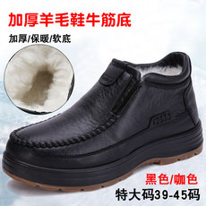 老北京布鞋男冬季爸爸棉鞋羊毛保暖加绒中老年棉靴大码防滑老人鞋