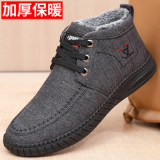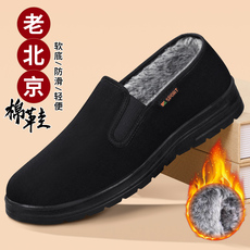 冬季老北京布鞋男棉鞋加绒保暖爸爸鞋加厚防滑中老年一脚蹬老人鞋