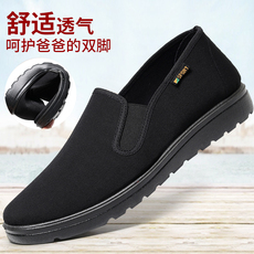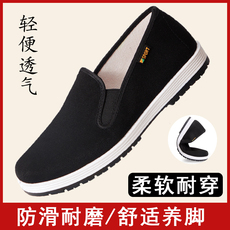 布鞋男黑色透气软底工作鞋中老年男士休闲一脚蹬耐磨老北京帆布鞋