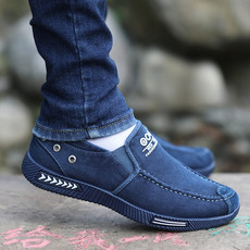 老北京布鞋男春秋新款休闲一脚蹬帆布鞋中老年防滑软底透气爸爸鞋