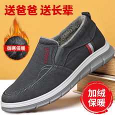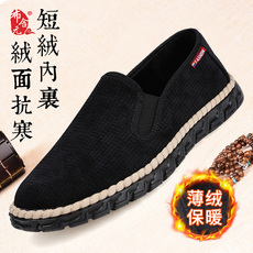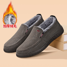 老北京布鞋男鞋冬季加绒保暖一脚蹬爸爸鞋防滑休闲软底中老年棉鞋
