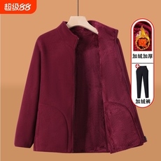 妈妈摇粒绒外套女中老年人春秋加绒加厚棉衣妈妈抓绒上衣老人衣服