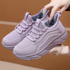 冬季飞织面加绒妈妈运动休闲鞋加厚保暖防滑老年人户外健步女棉鞋