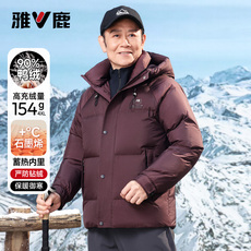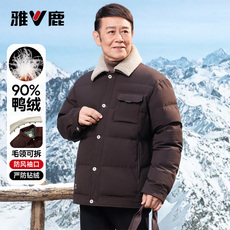 雅鹿可拆卸羊毛翻领羽绒服男款爸爸装冬季短款中老年防寒保暖外套