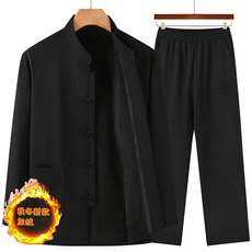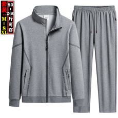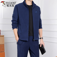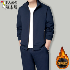 啄木鸟中老年运动服休闲套装男秋冬季加绒纯棉两件套爸爸立领外套