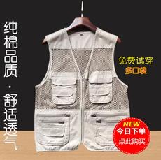 夏季男装马甲薄款网眼多口袋中老年坎肩男士休闲钓鱼摄影背心外套