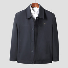 商务休闲中老年男装爸爸春秋外套翻领纯色老人夹克衫春季爷爷上衣