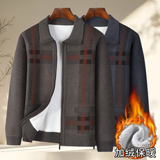 秋冬季爸爸装加绒加厚毛衣开衫中老年人男士针织外套爷爷保暖上衣