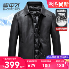 雪中飞皮衣羽绒服男翻领防风免洗加厚保暖秋冬季男装PU皮夹克外套