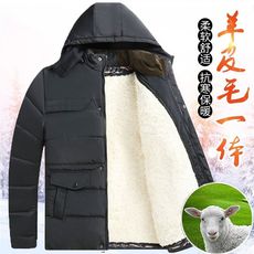 真羊皮棉衣秋冬季中老年加厚保暖羊皮棉袄男士爸爸装皮毛一体外套
