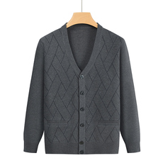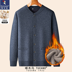 啄木鸟羊毛衫男开衫圆领中老年爸爸冬装针织毛衣加绒加厚爷爷外套