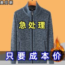 奥贝朗中老年男士半高拉链加绒加厚开衫爸爸秋冬保暖上衣毛衣外套