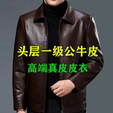 真皮皮衣外套男士100%头层牛皮秋冬季翻领加绒加厚纯皮夹克中老年