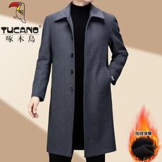 啄木鸟正品长款过膝羊毛大衣男秋冬加绒加厚大码中老年人毛呢外套