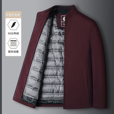 皮尔卡丹中年爸爸装白鹅绒夹克外套中老年男秋冬季加厚保暖羽绒服
