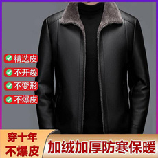 男士新款中老年真皮衣冬季加绒加厚翻领皮夹克男外套休闲皮毛一体
