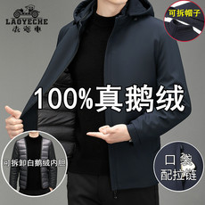 老爷车新款白鹅绒羽绒服男士冬季可拆卸内胆帽中老年加厚保暖外套