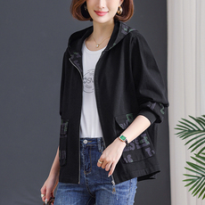 大码风衣外套女外穿春秋新款中老年妈妈宽松休闲长袖拉链连帽上衣