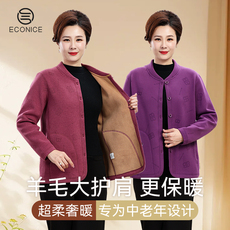妈妈春秋加绒外套老年人冬装女奶奶老太太针织开衫保暖衣老人衣服