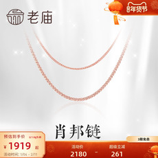 老庙黄金18K金素链轻盈闪O链基础百搭简约项链彩金自戴送礼物