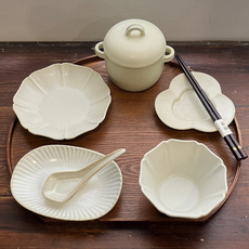 漫生活老板娘 素野陶忆 简约耐看素色一人食套装碗盘碗碟家用招待