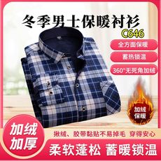 【加绒加厚】纯棉格子衬衫男长袖冬季休闲寸衫爸爸老年人保暖衬衣