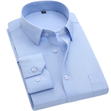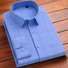 春夏季薄款的确良衬衫男士长袖中老年爸爸商务正装宽松衬衫