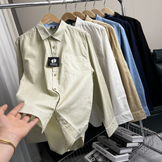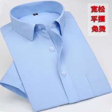 正品老年长袖色衬衫男士加肥加大码中胖子肥佬弹灰力业装工职装衬