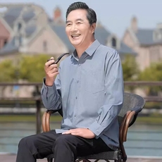 中老年男士长袖衬衫春夏季爸爸装丝光棉衬衣老年人薄款休闲套装