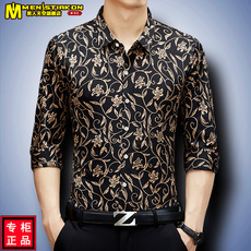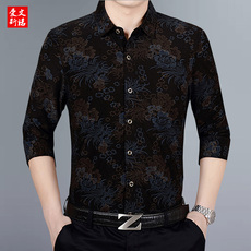 男士中年花衬衫长袖爸爸中老年宽松衬衣印花老年人男装秋冬季加绒