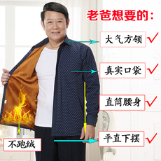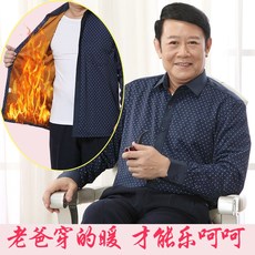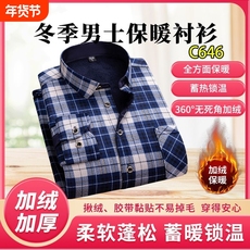 冬季爸爸装中年男士保暖衬衫加厚加绒衬衫老年人平摆宽松长袖衬衣
