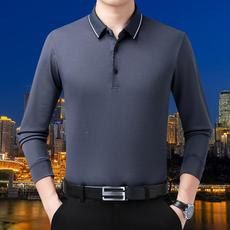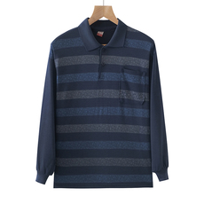 秋冬季新款参加婚礼爸爸装长袖t恤衫本命年中老年人男装T体恤上衣