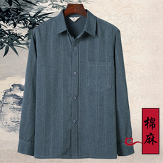 中老年男士长袖衬衫春夏季薄款宽松棉麻衬衣老年人爷爷大码爸爸装