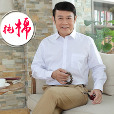 中老年男秋冬长袖的确良面料白衬衫中年爸爸装老年人宽松加绒衬衣