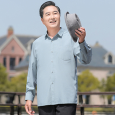 夏秋季中老年长袖衬衫男士爸爸装纯色宽松薄款冰丝衬衣老年人爷爷