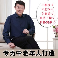 爸爸装衬衫春季中年男士长袖衬衫宽松老年人爷爷衬衫直边上衣60岁