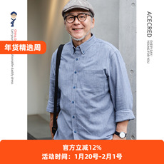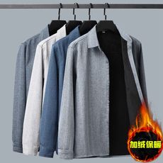 中老年男士长袖衬衫秋冬季加绒宽松棉麻衬衣老年人爷爷大码爸爸装