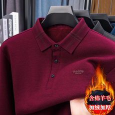 2024新款衬衫领长袖衬衫加绒加厚中老年保暖打底衫男秋冬季套头男